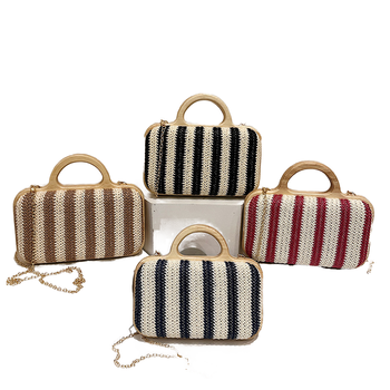 Bolso tejido de paja a rayas tejido a mano, bolso de mano para playa, vacaciones, bolso de mujer, forro de poliéster a la moda
