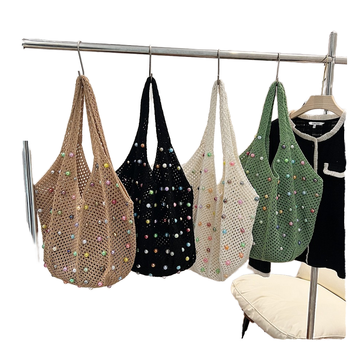 2025 transfronterizo nuevo bolso de mujer a rayas de gran capacidad que combina con todo Color contraste tejido abierto poliéster Europeo Americano